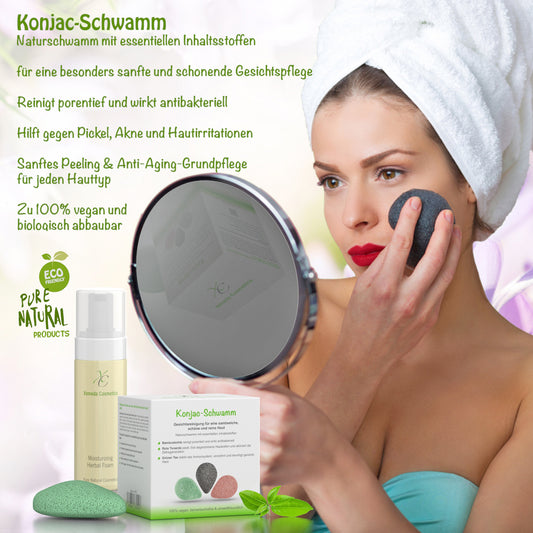 Der Konjac-Schwamm ist der perfekte Helfer, um Ihre Haut täglich frisch zu halten, porentief zu reinigen und zu peelen. Er massiert sanft und schonend die Haut und sorgt für eine gründliche Tiefenreinigung.